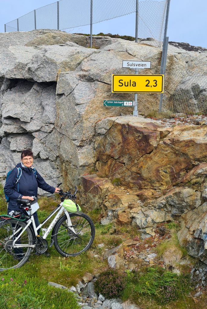 Ikke har vi syklet langt heller fordi vi bestemte oss for å ta ferga ut til Sula og der er det ikke så mye vei for å si det slik. Men siden denne bloggen handler om sykling tok vi nå syklene med utover.