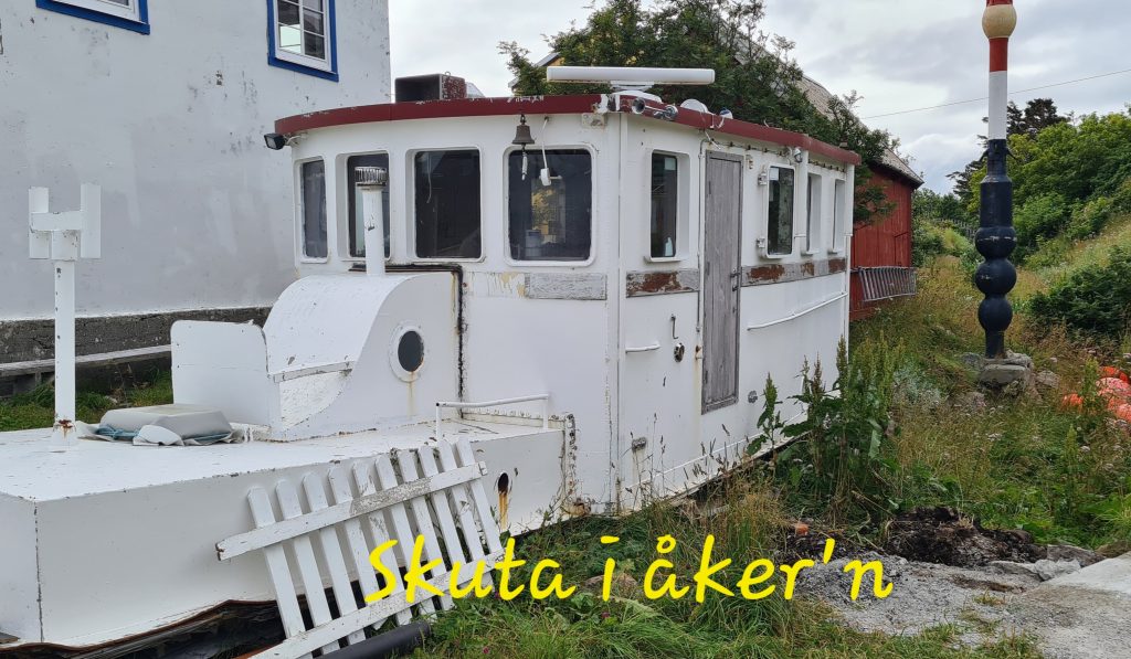 «Skuta» restaurant var stengt, så vi diska opp med egen lunch på øvre dekk. Det ble servert grovbrød (uten egna verktøy for skjæring av skiver) med et godt lag med leverpostei som smør og salami som pålegg. Veldig godt👍 Som underholdning hadde vi amfi til båter som skulle navigere inn til bensinpumpa som befant seg i en trang «bås» på brygga. Glad det ikke var meg som sto bak rattet, eller heter det roret når det er snakk om båt?