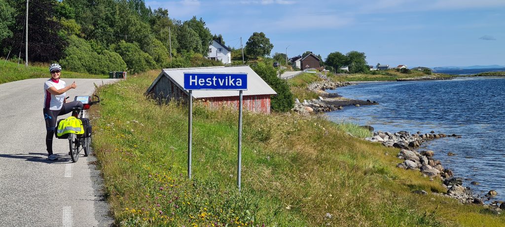 Vi forlot Knarrlagsund og trampet oss videre. Vi syklet via Ingeborgvika, Mastad, Øra, Sætra, Einvika og til Fjellvær.